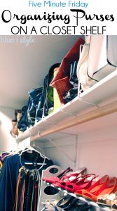 {five minute friday} A Simple Way to Organize Purses on a Shelf