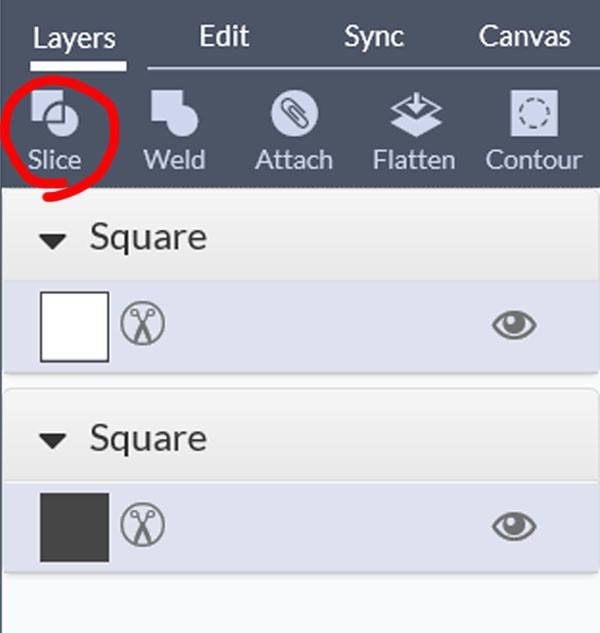 Next, I clicked on the “Slice” tool on the Layers tab.